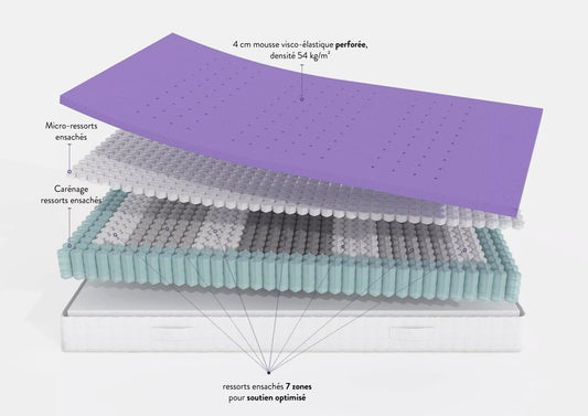 Explorez notre gamme de matelas deux places, spécialement conçus pour les couples et ceux qui recherchent un espace de sommeil plus généreux. Disponibles en plusieurs tailles et niveaux de confort (souple, équilibré, ferme), nos matelas deux places allient technologies innovantes et matériaux nobles pour un sommeil de qualité. Les ressorts ensachés offrent une indépendance de couchage idéale, tandis que la mousse viscoélastique perforée assure une aération optimale pour des nuits fraîches et confortables. Fabriqués en Europe avec des matériaux durables et respectueux de l’environnement, nos matelas deux places sont l'incarnation du savoir-faire Bellesource. Trouvez le matelas parfait pour des nuits sereines, à deux ou en solo.